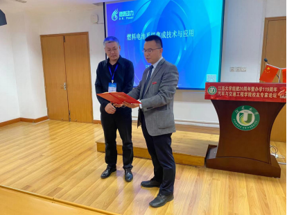德燃动力系统有限公司副总经理高海宇校友做了题为“燃料电池系统集成技术与应用”的报告,他介绍:在核心部件方面,德燃动力依托于强大研发能力,已经推出氢燃料电池发动机专用空压机、供氢回氢组件、气水分离器等。其中空压机完全自主研发,采用高速电机直驱、离心式增压、无油润滑等技术,有效降低传动系统噪声,避免润滑油泄漏导致电堆损坏,更符合中高压电堆对高压比的运行要求。供氢回氢组件产品,则属于国内首个基于独立回路的双级引射供氢回氢组件;气水分离器具有模块化设计、高集成度等特点。