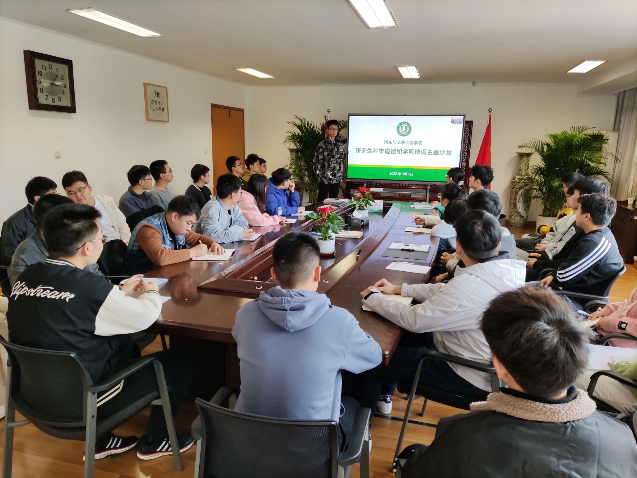 为进一步提高365英国上市研究生科研创新的积极性,营造诚信、道德的良好学风,3月5日,365英国上市在汽车楼310会议室举办了研究生科学道德和学风建设主题沙龙,辅导员汪峥嵘主持,一年级硕士各班代表到场研讨,其余研究生在线参与并发言。