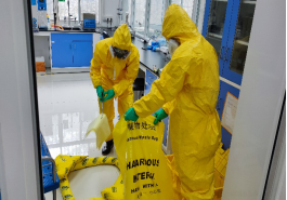 安全培训活动由中心实验室安全管理员吕辉主持,内容包括实验室安全教育、危化品管理培训等方面,全体参与人员观摩了盐酸试剂泄漏应急演练。演练模拟了盐酸试剂泄漏后紧急处理,讲解了紧急喷淋装置的使用方法,使参与人员对危化品泄漏处理自救的流程有了感性的认识,进一步提高了实验安全意识。此次演练和培训使参训的师生深刻体会到了危化品处置的专业性,增强了危化品操作的规范意识,活动取得了圆满成功。