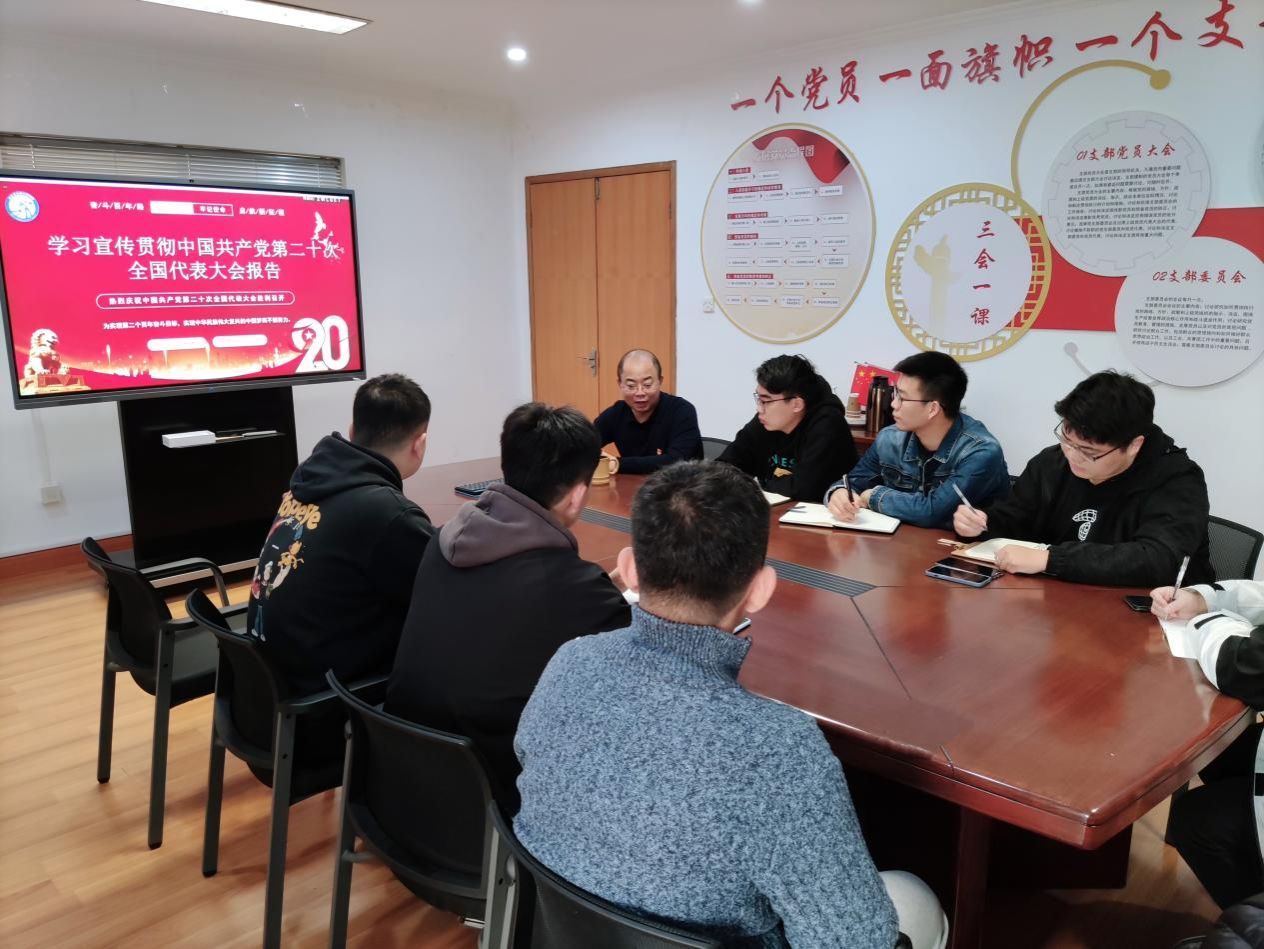 杨建同志为各位党员介绍了党的二十大胜利召开背景,并对大会报告做了重点解读,引导同学们学习宣传贯彻党的二十大精神,以实际行动践行初心使命,增强“四个意识”、坚定“四个自信”、做到“两个维护”。随后,杨建同志向同学们了解了近期研究生集体的学习和生活状况,师生进行了友好交流。