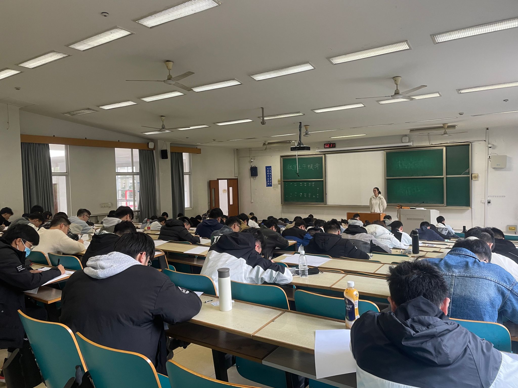本次模拟考试严格遵循考试流程,力图打造真实的研究生入学考试环境。考生提前15分钟入场后,由辅导员张杜老师向大家宣读了考场纪律和相关考试要求。8点30分考试正式开始,同学们认真审题,严谨作答。整场考试中,考场秩序有条不紊考试结束后,同学们立即停止答题,在监考员收卷之后有序离场。