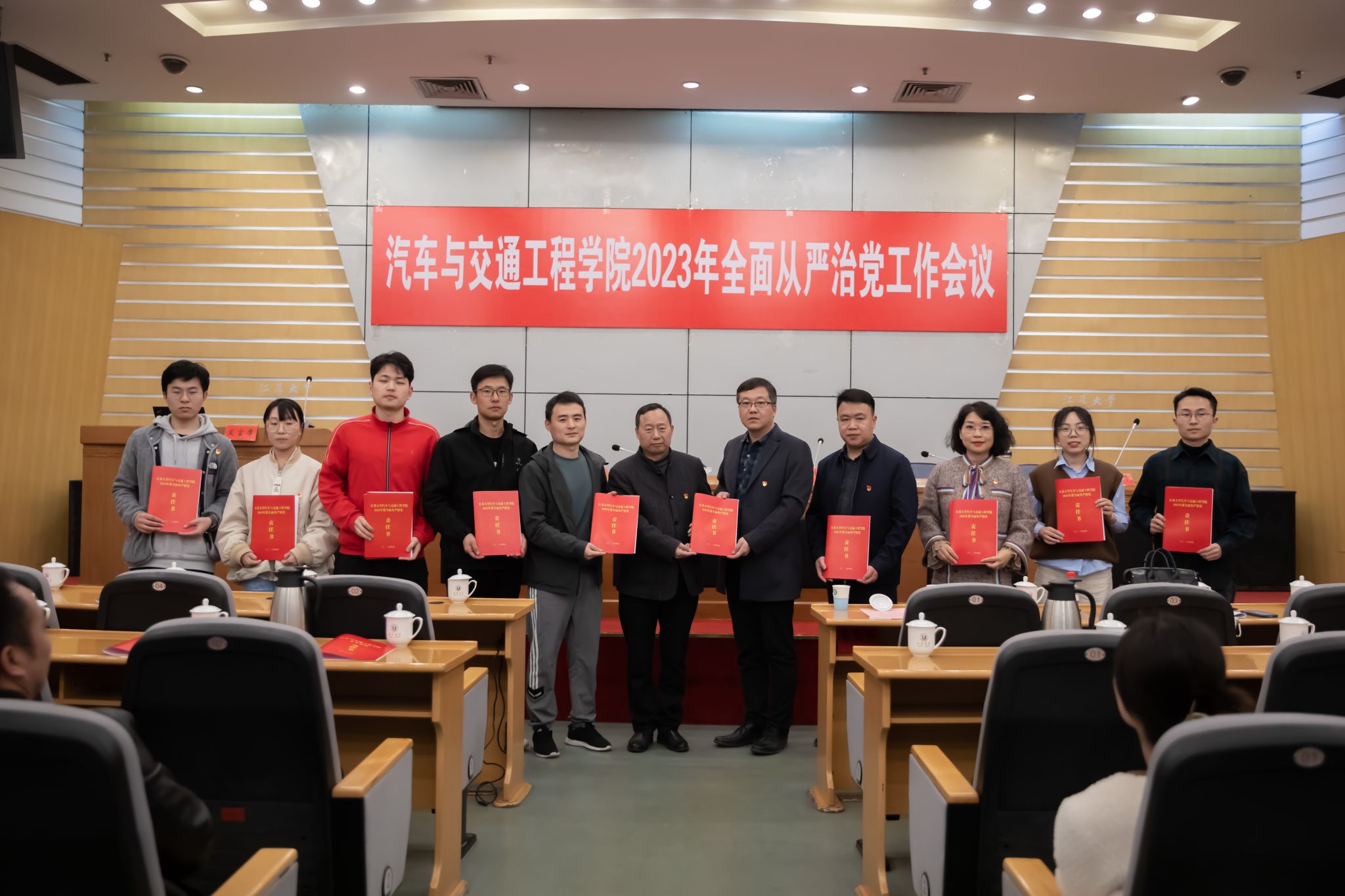 会上,全体院党委委员和二级党支部书记代表向院党委书记递交2023年度全面从严治党责任书,意识形态工作责任书;院领导与各联系系(室)负责人签订安全管理责任书。