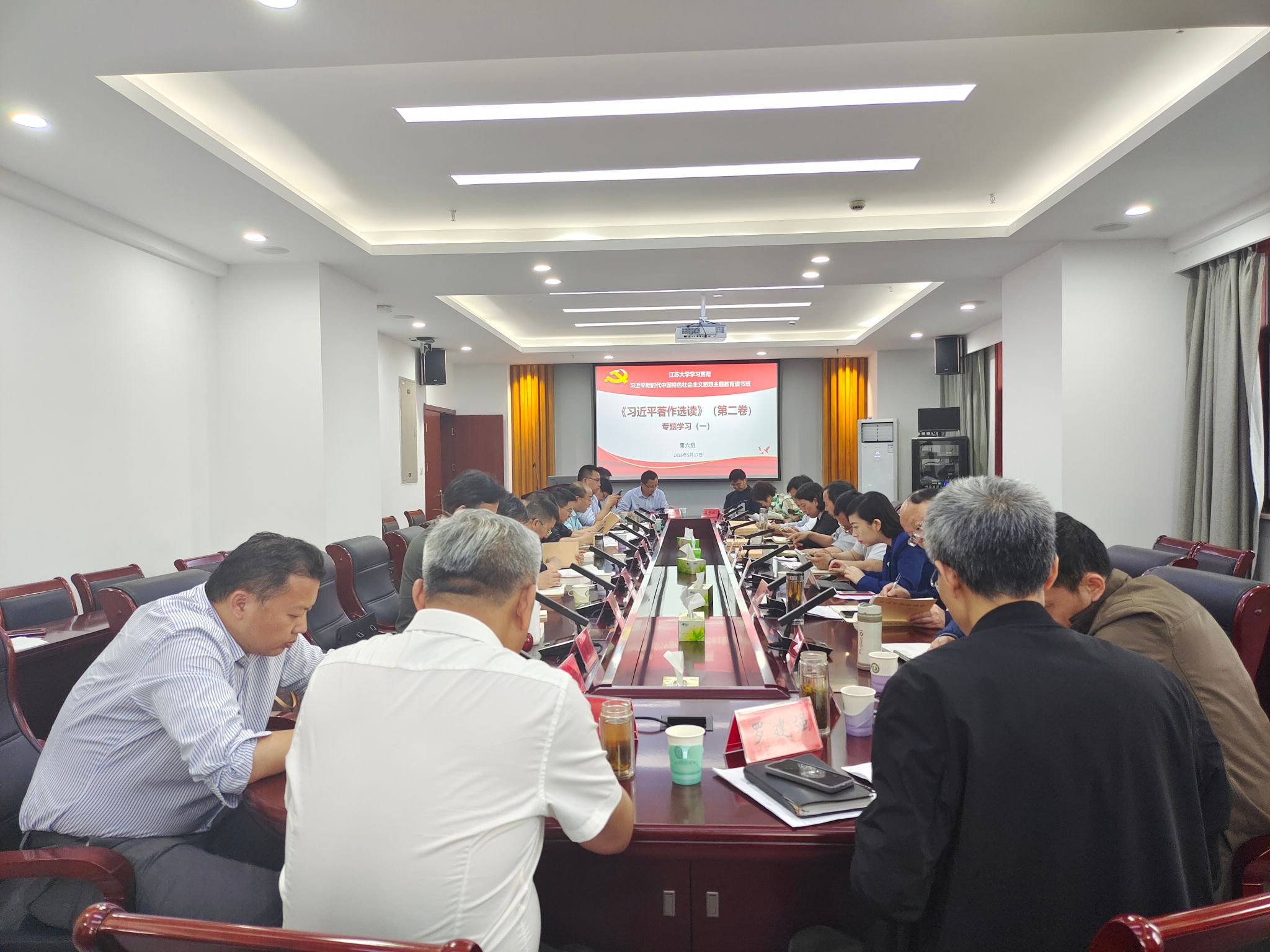 5月17日,英国上市公司官网365学习贯彻习近平新时代中国特色社会主义思想主题教育读书班第六组在耒耜大楼F304专题学习《习近平著作选读》第二卷。本次学习由农业工程学院党委书记金玉成主持,第六组读书班全体成员参加学习交流。