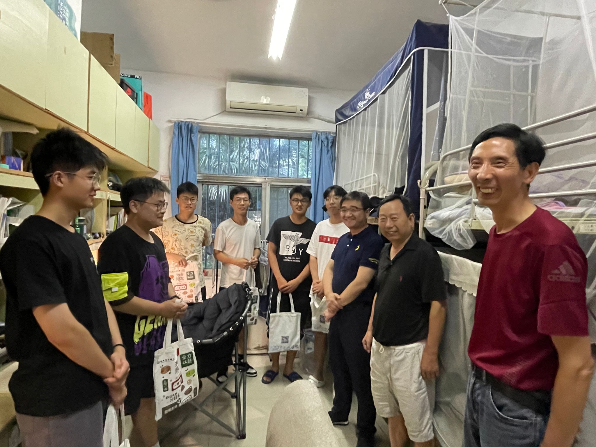 7月31日,365英国上市党委书记施爱平、院长尹必峰、党委副书记杨建、关工委朱茂桃老师在辅导员杨扬、丰德两位老师的陪同下深入宿舍看望暑期留校学生。在宿舍里,老师们与学生进行亲切交流。施书记十分肯定同学们暑期留校参与研究生备考、科研、竞赛等不畏酷暑、只争朝夕的精神,同时勉励同学们要珍惜时光、脚踏实地。尹院长十分关心同学们的留校生活,提醒同学们要劳逸结合,平衡好压力和动力,保持身心健康,生活学习上的需求要及时向学院反映。杨书记特别强调了安全问题,提醒同学之间要互相帮助和关心,谨防电信诈骗、极端天气、交通安全等。