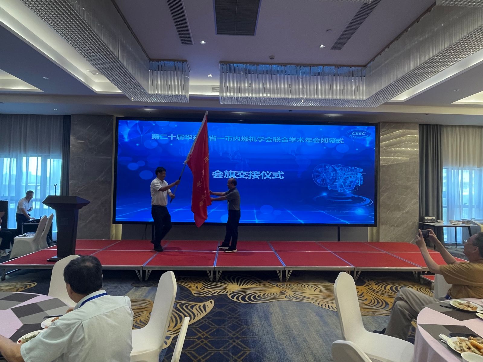 20日中午技术交流环节结束后,大会为优秀论文作者颁了发获奖证书,并举行隆重的会旗交接仪式。下午会议组织各代表赴爱国主义教育基地东海云廊步道开展党建活动参观。