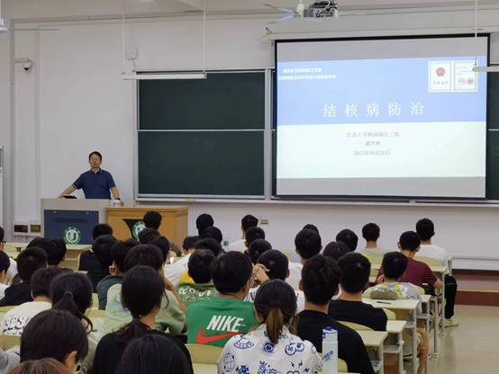讲座过程中,潘洪秋用生动形象的动画为同学们科普了何为结核病、结核病有哪些症状、结核病该怎么检查、得了结核病该怎样治疗、如何预防结核病等多个方面全面具体详实地为同学们进行了科普。同时,还通过人偶模拟的方式,为同学们传授如何进行心肺复苏,一定程度地掌握了现场急救知识和急救技能。