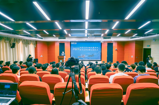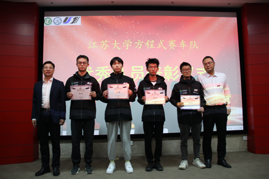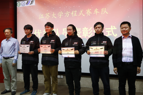 车队发布2023年度高燃视频,讲述了队员们一年造车经历的辛苦与努力,点燃了全场的气氛。陈龙教授、汪若尘教授分别为车队优秀管理队员、技术骨干、优秀队员颁奖。