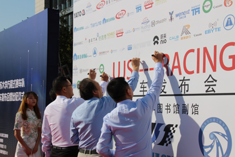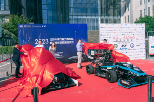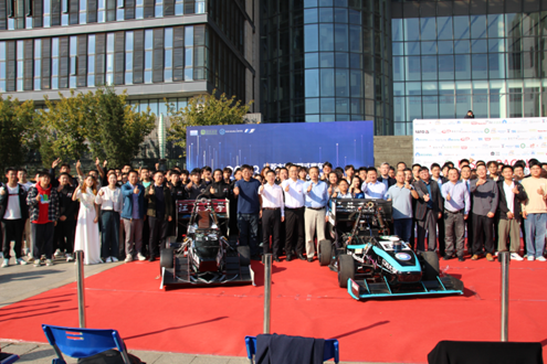 最后,各位出席领导、嘉宾,各赞助商参加2023赛季新赛车JRt-1无人驾驶赛车以及A11电动赛车两辆新车的揭幕仪式并合影留念。