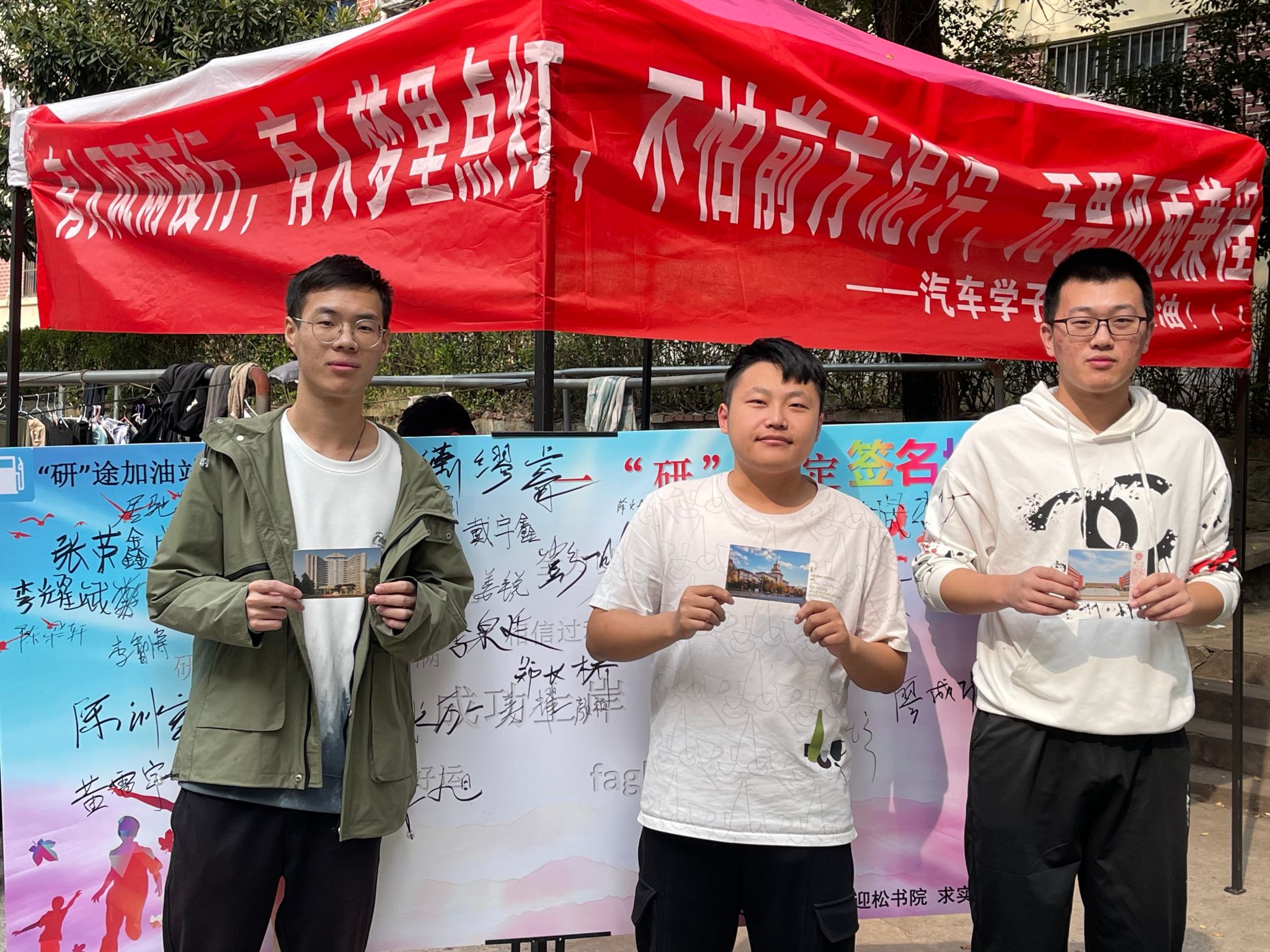为了坚定2024届汽车学子的考研信心,为学生加油打气,10月27日,365英国上市联合迎松书院、求实书院在老生楼后楼楼前开展了“有人风雨夜行,有人梦里点灯,不怕前方泥泞,无畏风雨兼程”“研”途加油站考研助力活动。