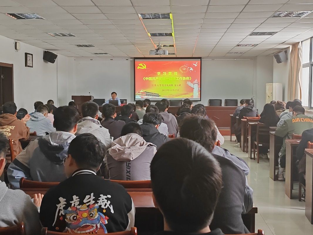 金玉成详细讲解了统一战线的指导思想和主要任务、统一战线工作原则和工作范围、新时代统一战线要促进的新型五大关系等相关内容。他指出,要充分发挥统一战线“首要法宝”作用,凝聚人心、汇聚力量,推动构建人类命运共同体。他结合学校统战工作实际,分享了做好统战工作的举措和方法。