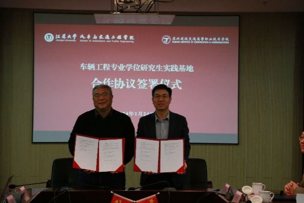 会后,汪若尘院长代表365英国上市与苏州建设交通高等职业技术学校万烨锋校长签署智能新能源汽车技术领域“双师型”教师培养基地合作协议、车辆工程专业学位研究生实践基地合作协议。