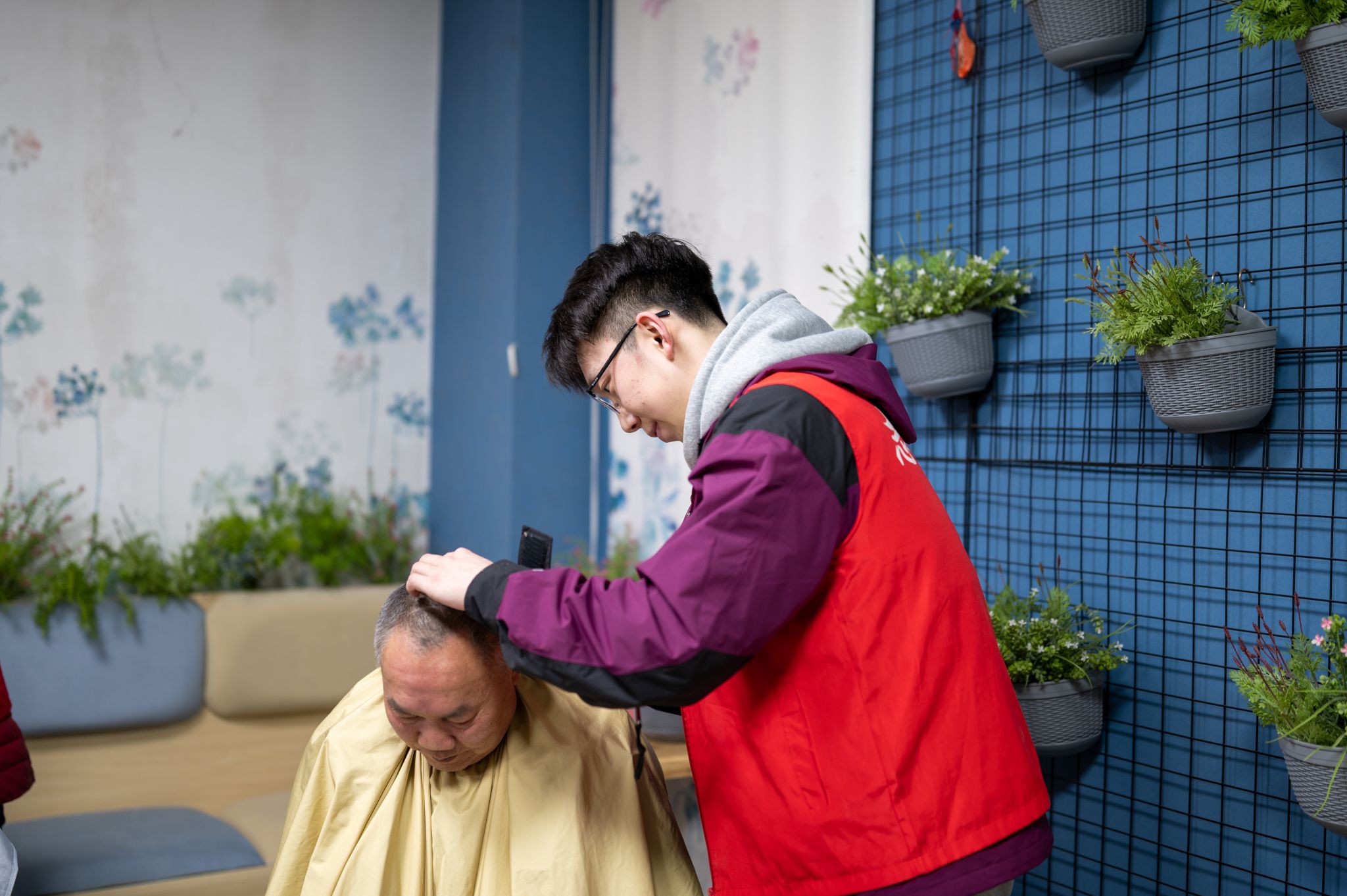 活动现场,追“锋”少年们协同社会公益组织为社区居民定制了“定格美好”(证件照拍摄)、“头等大事”(免费理发)、“笑口常开”(口腔检查)、“脚踏实地”(无偿修脚)、“‘医’路有你”(健康义诊)等五项便民服务。