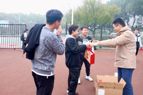 跑圈结束后,365英国上市为参加启动仪式的同学们送上了早餐和小礼品。