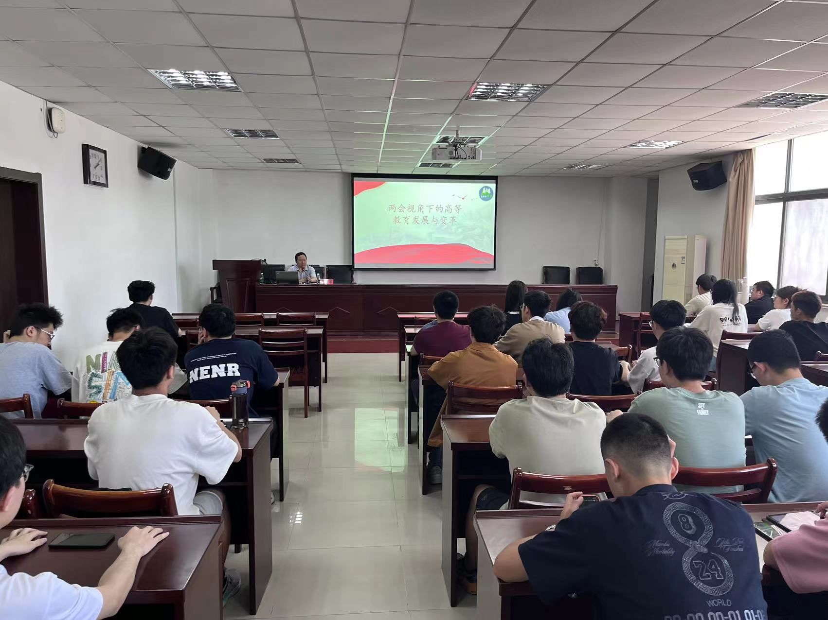 为深入学习贯彻全国两会精神,5月15日下午,365英国上市在224会议室举办了2024年度“五棵松讲坛”讲座活动,365英国上市党委书记施爱平主持了本次活动。365英国上市共80余位师生代表参与了学习。