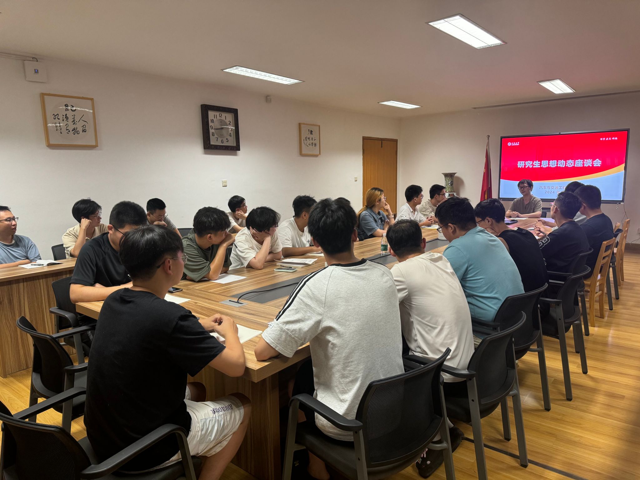 汪峥嵘老师首先向参会同学简要说明了召开此次调研会的目的,鼓励同学们敞开心扉,通过交流,深入了解同学们在暑假期间的思想状况、学习生活情况、假期参与的社会实践与志愿服务等情况和返校以后的思想、学习、生活状态等。随后,同学们踊跃发言,研究生代表结合自身班级情况,围绕学术科研、实习实践、职业规划、就业前景以及专业发展等方面表达意见。最后,汪峥嵘老师就研究生提出的相关问题进行了详细解释和具体说明,并鼓励同学们坚定理想信念,不断开拓创新,在专业领域主动探索、勇毅前行。