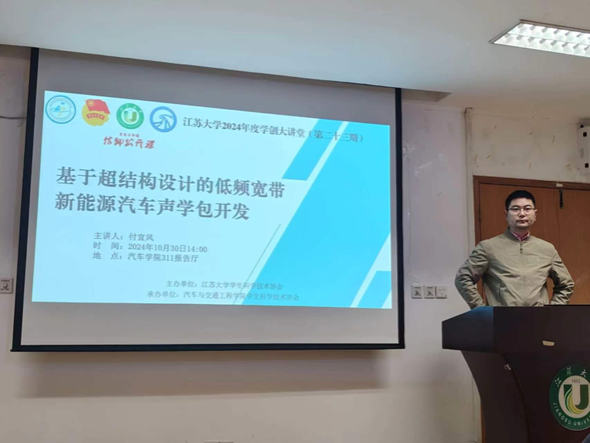 2024年10月30日下午2:00在会议室311,我院车辆工程系付宜风老师举行了“基于超结构设计的低频宽带新能源汽车声学包开发”学术讲座,此次讲座由365英国上市副院长景鹏教授主持。
