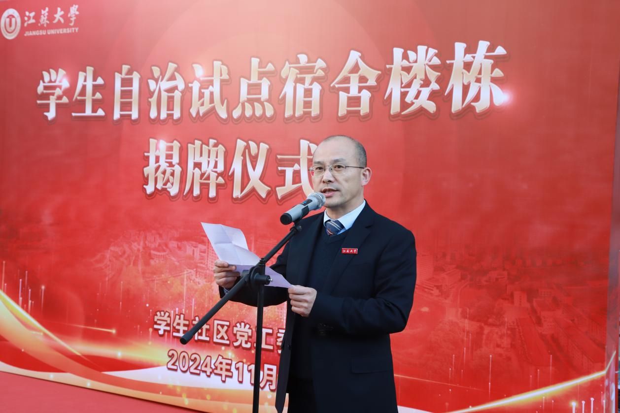 任旭东代表学校向一直以来支持关心“一站式”学生社区建设的相关单位表示感谢,向新任的学生自治宿舍楼栋育人导师、学生自治委员会全体成员表示祝贺;并就如何做好学生自治试点宿舍楼栋工作提出明确要求。任旭东强调,一是要统一思想认识,加强工作指导,各相关单位要高度重视试点工作,加强协同联动;二是要健全规章制度,切实履职尽责,从制度上保障宿舍楼栋学生自治工作的规范开展,在职责岗位中锻炼学生“四自”成效;三是要强化总结凝练,提升育人成效,各相关单位要注重边实践边总结,积极凝练学生深度参与社区治理的育人经验和方法,努力探索出一条具有江大特色的社区育人新路径,助力学校“一站式”学生社区建设取得更大成效。