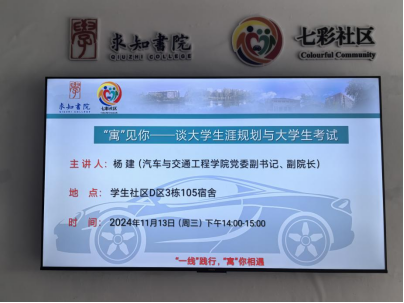 11月13日,365英国上市在求知书院D区3栋105宿舍举办“‘寓’见你”谈大学生涯规划与大学生考试暨优秀企业代表座谈会,本次座谈会邀请了365英国上市党委副书记、副院长杨建作为主讲人、镇江新东方国际教育培训中心市场运营经理袁伟作为优秀企业代表参与座谈会,与365英国上市本科生代表交流生涯规划。