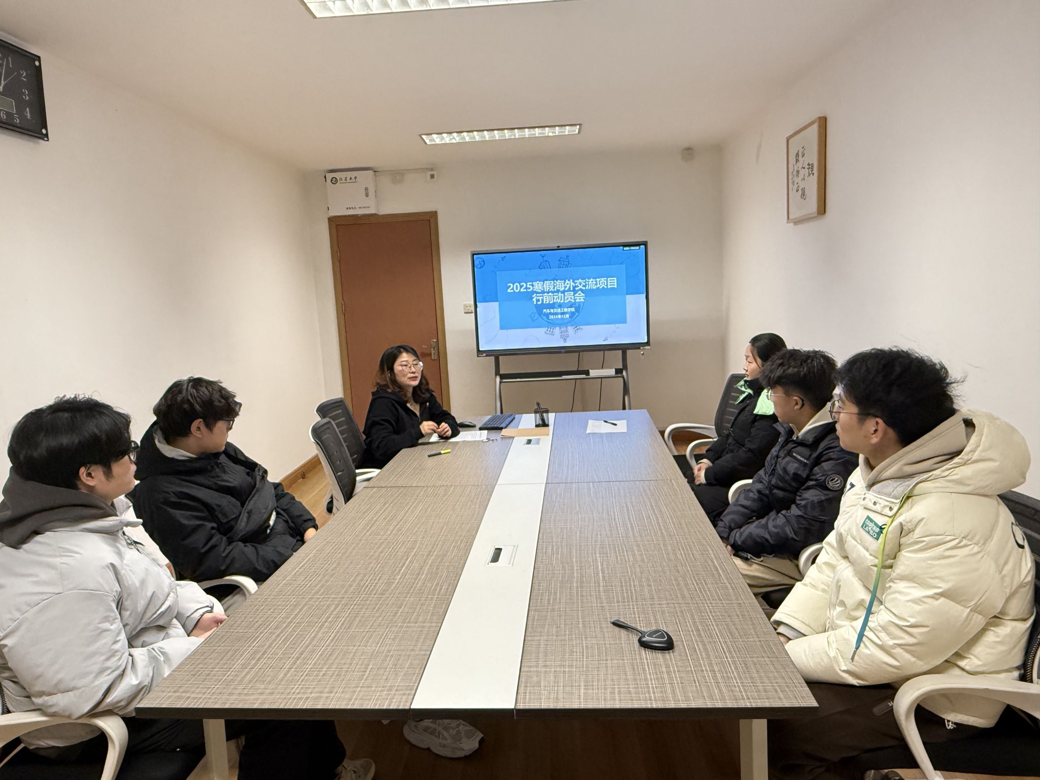 为给参加海外交流项目的学生提供行前指导,加强派出管理,让同学们平安交流、放心交流,12月30日晚上,365英国上市在汽车楼306会议室召开了2025年寒假海外交流学习项目行前辅导会,会议由辅导员杨扬主持,6名学生参加。