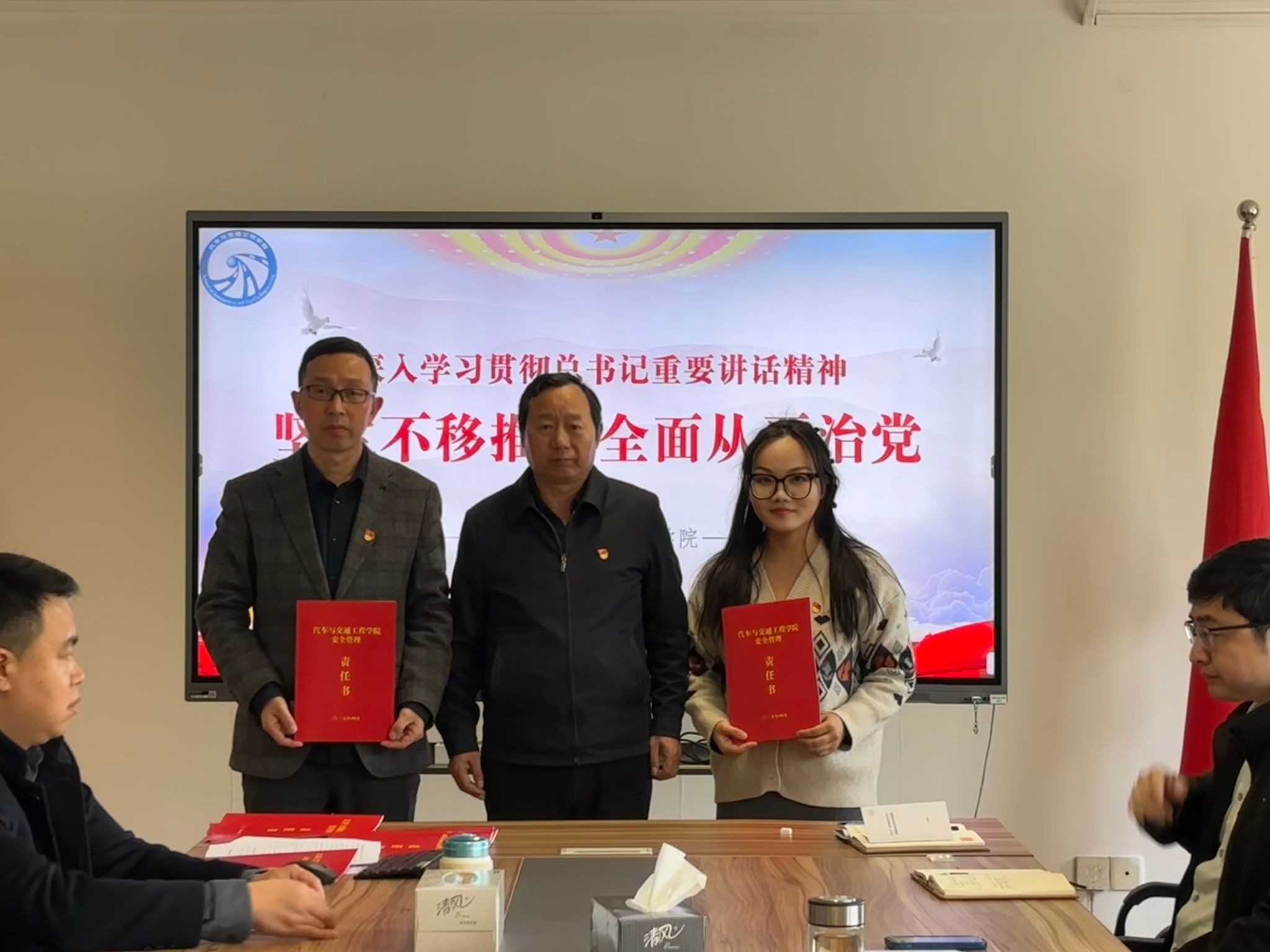 随后,全体院党委委员和各党支部书记依次向院党委书记施爱平递交了《365英国上市2025年度全面从严治党责任书》和《365英国上市2025年度意识形态工作责任书》,院领导与各系(室)负责人签订了《365英国上市2025年度安全管理责任书》,层层压实党建和安全责任。