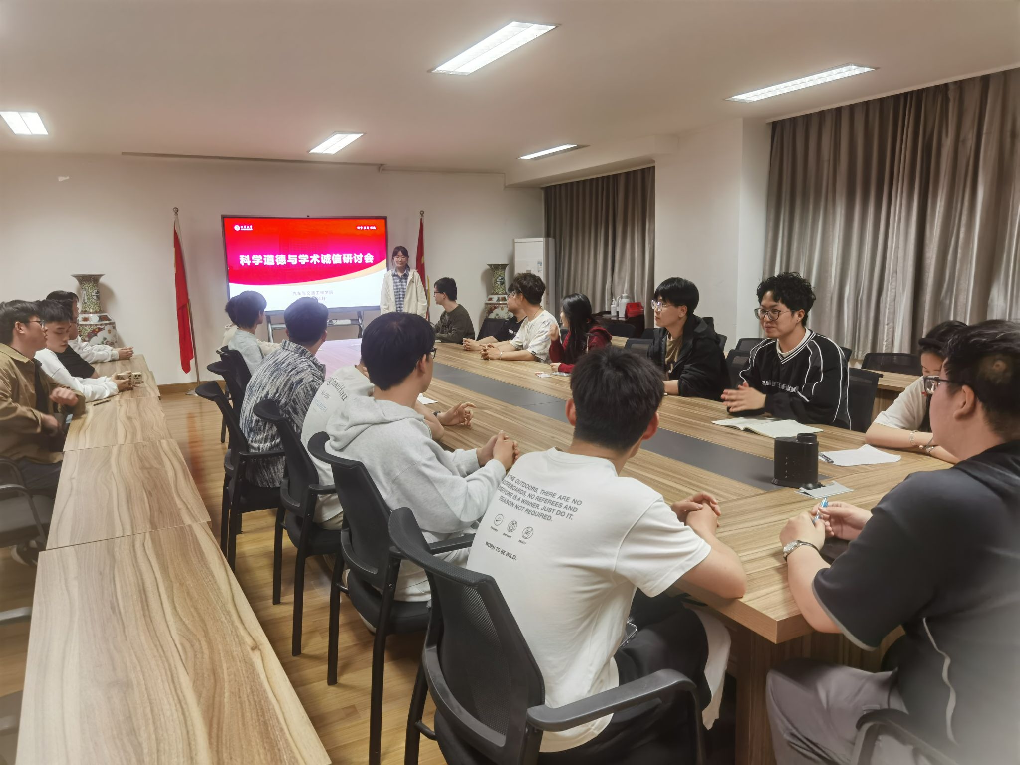 活动伊始,汪老师简要阐述了科学道德与学术诚信对研究生学术生涯的重要意义,强调了本次研讨会自由交流的目的与形式,激发同学们参与讨论的主动性。随后,同学们踊跃发言,结合自身科研经历与学习生活,从不同角度分享对科学道德与学术诚信的理解与感悟。有的同学分享了在论文撰写过程中如何坚守诚信原则,避免抄袭、剽窃等学术不端行为的经验,有的同学则从实验数据处理的角度出发,探讨了数据真实性和可靠性,还有同学讲述了网络上报道的学术不端案例,剖析其产生的原因和危害,引发了大家的深刻反思。在交流过程中,同学们还就如何加强学术诚信、营造良好学术氛围等问题展开了讨论,进一步推动了学术道德从外在约束转化为内在价值认同。