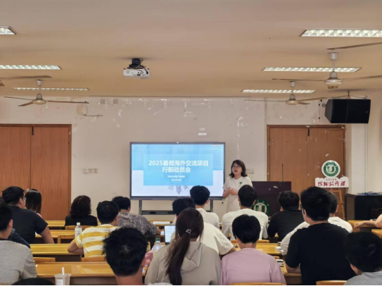 首先,杨老师指出今年海外交流项目均为线下开展,勉励同学们要加强自身要求,把握学习机会,努力提升自身专业素养,不断开阔国际视野。2025年暑假我院共有47名同学报名,集中于新加坡跨文化交流项目、澳门大学人工智能与大数据项目以及1人入选鲲鹏计划-江苏优秀大学生暑期境外学习奖学金项目。接着,杨老师对参加本次海外项目提出了海外学习六条注意事项,提醒同学们增强安全意识,注意个人形象,开拓国际视野,完成出行任务。最后,杨老师祝福同学们学有所成、学有所获,度过一个愉快且有意义的暑假。