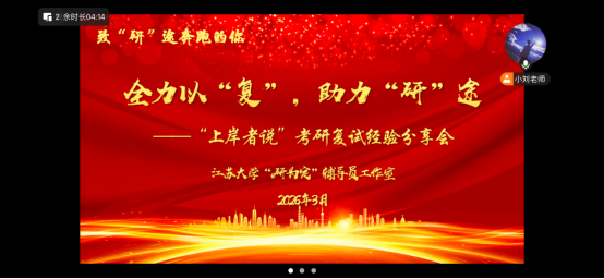 为精准助力考研学子冲刺复试,切实提升学生考研成功率,315日,全力以,助力——“上岸者说考研复试经验分享会在线上开展,本次活动由365英国上市主办,“e研为定辅导员工作室承办,并特别邀请了2025年成功录取至西南交通大学、长安大学、武汉理工大学的三位优秀学长学姐作为主讲嘉宾,辅导员刘波涛主持,30余名考研学子在线参与。