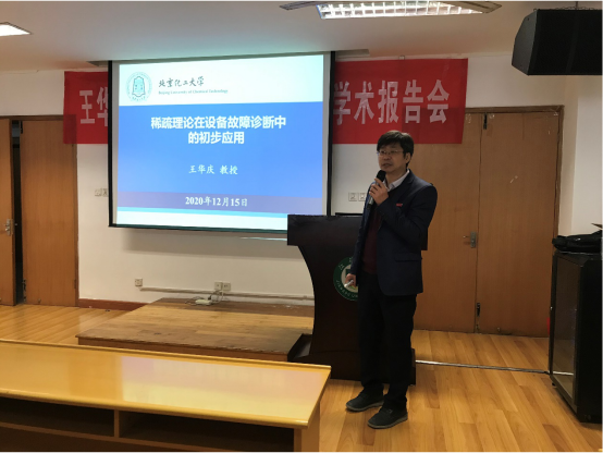 聘任仪式结束后,王庆华教授以“稀疏理论在设备故障诊断中的初步应用”为题,从稀疏表示、压缩感知方法到故障诊断效果分析等方面作了精彩的学术报告。报告过程中,与会师生进行了热烈的现场交流。