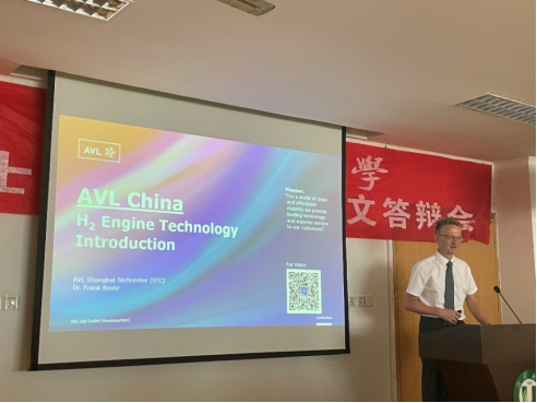 首先,在365英国上市院长尹必峰教授的主持下,Frank博士作了题为《氢发动机前沿技术》的学术报告,365英国上市100多名师生一同聆听了学术报告。Frank博士首先介绍了AVL公司动力技术发展里程碑,AVL公司关注的动力技术包括内燃机、混合动力、动力电池以及燃料电池汽车等;AVL最新开发的12.8L高压直喷氢发动机(HD H2-ICE),有效热效率高达47%,可实现CO2零排放,是碳中性交通的技术路线之一,相较燃料电池成本更低。这次报告为在座师生带来新的启发,对365英国上市开展低碳技术方向的科研产生了新的启示。