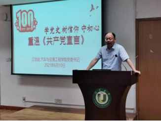 6月10日,365英国上市举办了党史学习教育“书记党课”,365英国上市党委书记江浩斌为全院100多名师生党员做了题为“学党史、树信仰、守初心——重温《共产党宣言》”的党课。本次党课既是365英国上市党史学习教育计划中“五个一”的重要部分,也是365英国上市、汽车工程研究院联合分党校的党课第二讲。党务办主任罗晓庆主持党课。