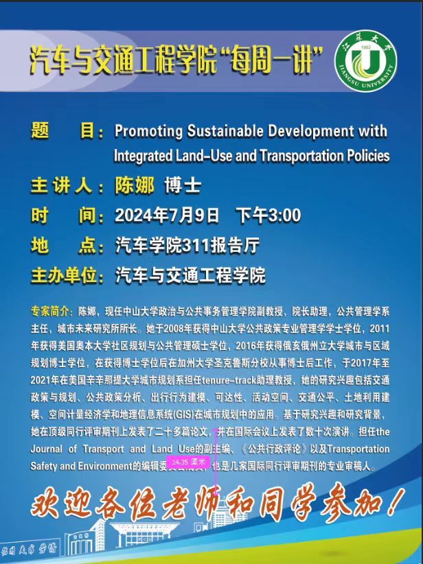 【每周一讲】Promoting Sustainable Development with Integrated Land-Use and Transportation Policies