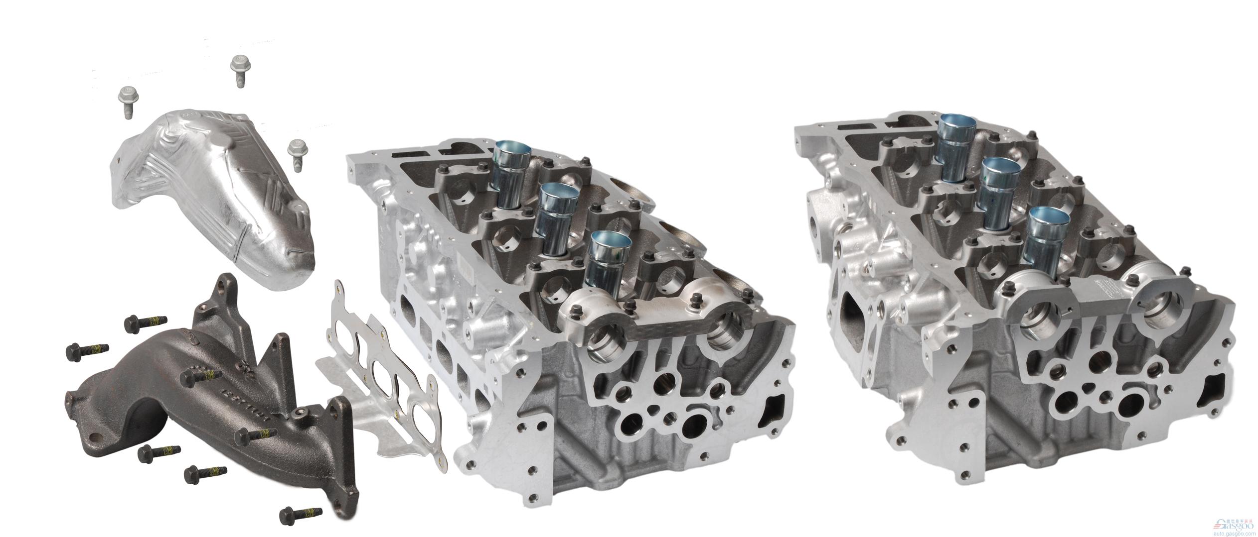 图为新型一体化排气歧管-气缸盖设计(右)和旧款气缸盖设计(左)之间的比较。旧款设计与新设计最大的区别——排气歧管和气缸盖,以及相应的垫圈与紧固件——与整体剥离,单独显示。