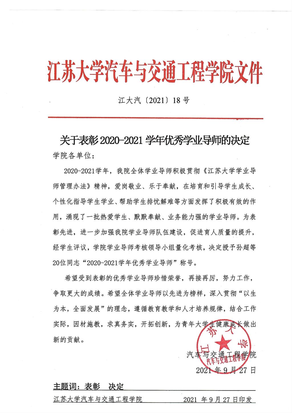 关于表彰2020-2021学年365英国上市优秀学业导师的决定