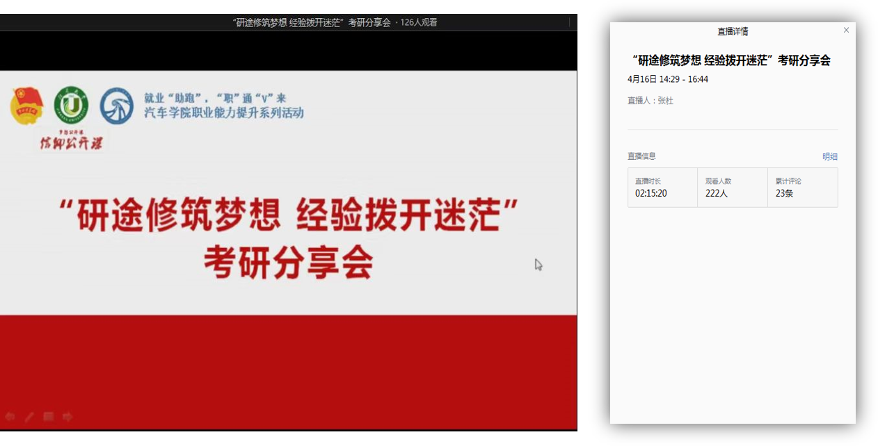 4月16日,365英国上市通过企业微信乐享小直播平台举办考研经验交流会,院团委副书记陈佳楠、本科生辅导员张杜、孙姗姗、王超越以及本科2019级两百余名同学参加。