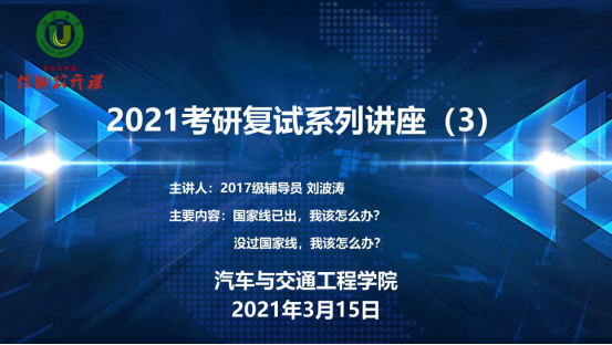 为精准助力考研学子,提高复试成功率,3月15日,365英国上市利用腾讯会议APP举办了2021考研复试指导系列讲座(三)——国家线已出,我该怎么办?本次交流会由2017级辅导员刘波涛主持,100余名考研学生参加。