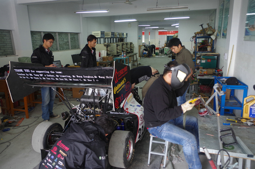 10月13日下午5点钟,大部分赛车队员都已抵达襄阳梦想赛场。坐了近24小时的火车后,队员们只是简单地休整了一下,便积极投身于赛车调试工作。没有喊苦,没有喊累,赛前最后一晚,大家还在默默地工作着,力争在比赛中取得好成绩。