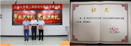 In early July, the 2nd Informatization Teaching Competition of Jiangsu University was held in the Smart Classroom in Sanshan Building. Prof. Tang Dong of the Department of Power Engineering of our school won the first prize, and the principal Yan Xiaohong presented the award.