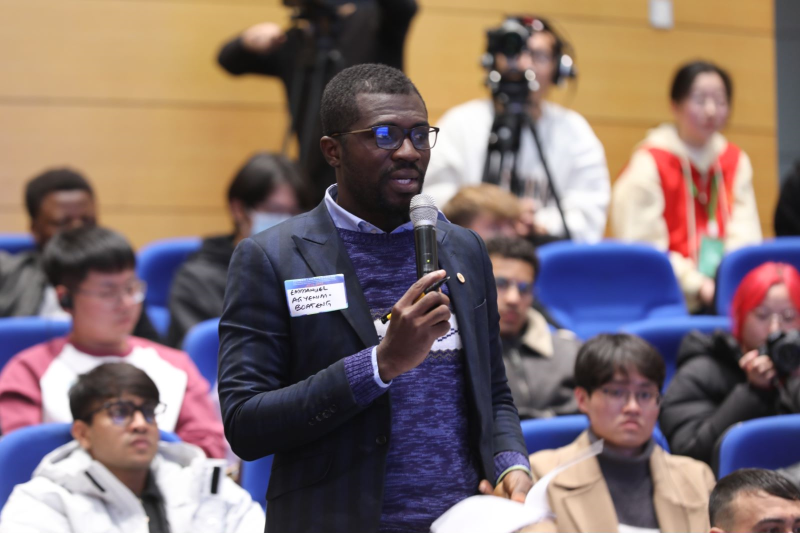 Our college teacher Chen Yu, Emmanuel Agyenim Boateng (an international PhD. student), and Josephine Baffoe (an international master's student) were invited to participate this conference. They expressed their views on these two topics and had in-depth interaction with the other attending experts and teachers. In particular, our international student Josephine Baffoe was invited as a stage guest on the topic of "how young students view engineering technology and humanities" and had an exchange with Academician Kai Sang Lock on the topic.