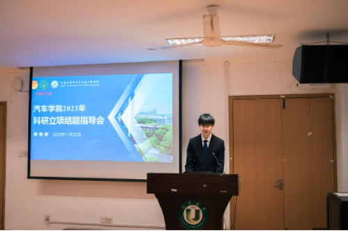 On November 25, 2023, the College of Automotive Science held the 2023 research project completion guidance meeting in the 311 lecture Hall, and Teacher Sun Chao was invited to be the keynote speaker of the guidance meeting.