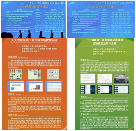 Our entry "Optimization Design of Urban Parking Lot under Unmanned Environment" won the first prize (students: Weng Xin, Chen Taoliu, Xiong Runzhen, Wang Yifan, Yan Yutong; instructors: Sun Chao, Sun Xiaodong). The work "One-Key Through" Emergency Vehicle Dynamic Green Wave Regulation Model and Software System" won the second prize (participating students: Chen Taoliu, He Runxin, Liu Xianyu, Han Junyou, Tian Jiangdong; instructor: Zhang Peng).