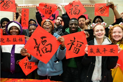 Additionally, the "Taste of Tradition" practical team organized a "Savor the Chinese New Year" event for foreign students celebrating the holiday at the school. Students from various countries participated together in experiences such as writing Spring Festival couplets, writing the Chinese character "Fu" (symbolizing good fortune), cutting paper window decorations, making lanterns, and solving riddles, savoring the Chinese New Year in a joyful and harmonious atmosphere.