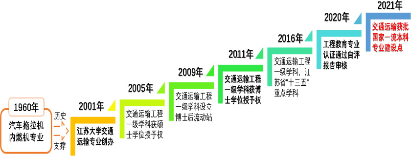 依托1960年镇江农机学院(现英国上市公司官网365)的汽车拖拉机专业和内燃机专业的雄厚实力和底蕴,交通运输专业创办于2001年,2002年经江苏省教育厅批准面向全国招生。本专业依托交通运输工程学科,坚持“教学科研相长,理论实践相融”的办学思想,逐步形成了以本科教学为主的完善的学士、硕士和博士、博士后的人才培养体系。于2020年通过了中国工程教育专业认证自评报告的评审,专家即将入场评审。2021年初,《教育部办公厅关于公布2020年度国家级和省级一流本科专业建设点名单的通知》(教高厅函〔2021〕7号)下发,交通运输专业获批了国家一流本科专业建设点。