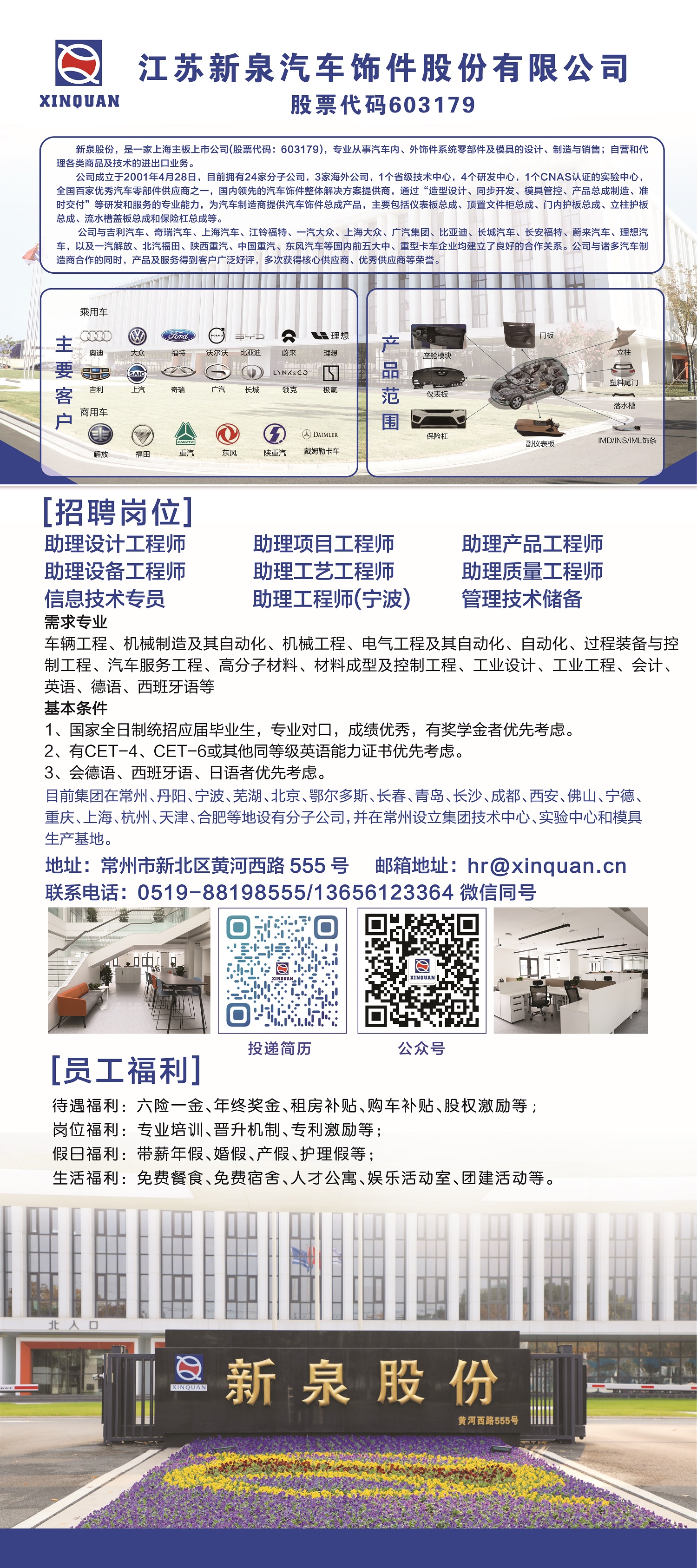 江苏新泉汽车饰件股份有限公司2024招聘信息