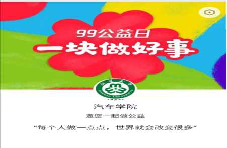 在2020年“99公益日”活动中,我院工会在校工会、江大妇联的指导下,在全院教职工中进行广泛宣传,全面介绍“99公益日”网络筹款规则和参与方式,积极组织教职工参与爱心公益活动。