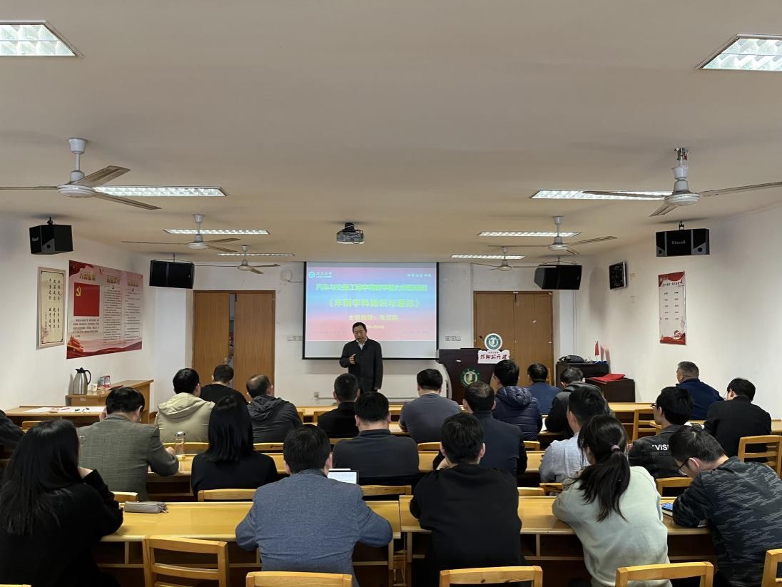 校教学名师朱茂桃教授讲授本次培训班的第一课—车辆学科知识与理论,朱老师主讲内容为《汽车构造》的概论部分,不仅教授了课程基础理论知识,同时还授予大家先进的教学资源、教学方法、教学资源等。