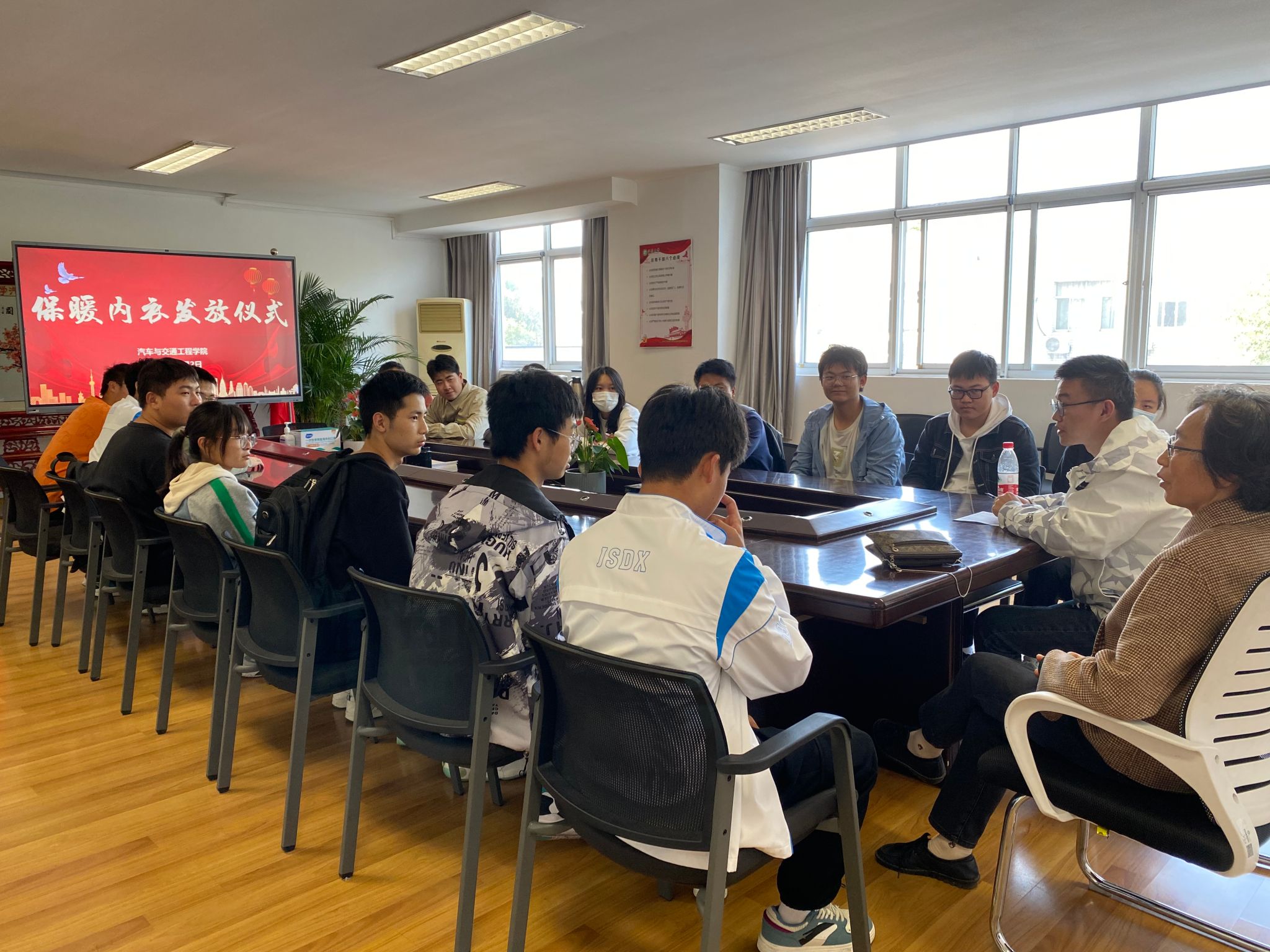 11月3日,365英国上市在310会议室举行2022级学生暖冬行动暨保暖内衣发放仪式,365英国上市关工委委员于英老师、资助辅导员刘波涛及部分学生参加了发放仪式。