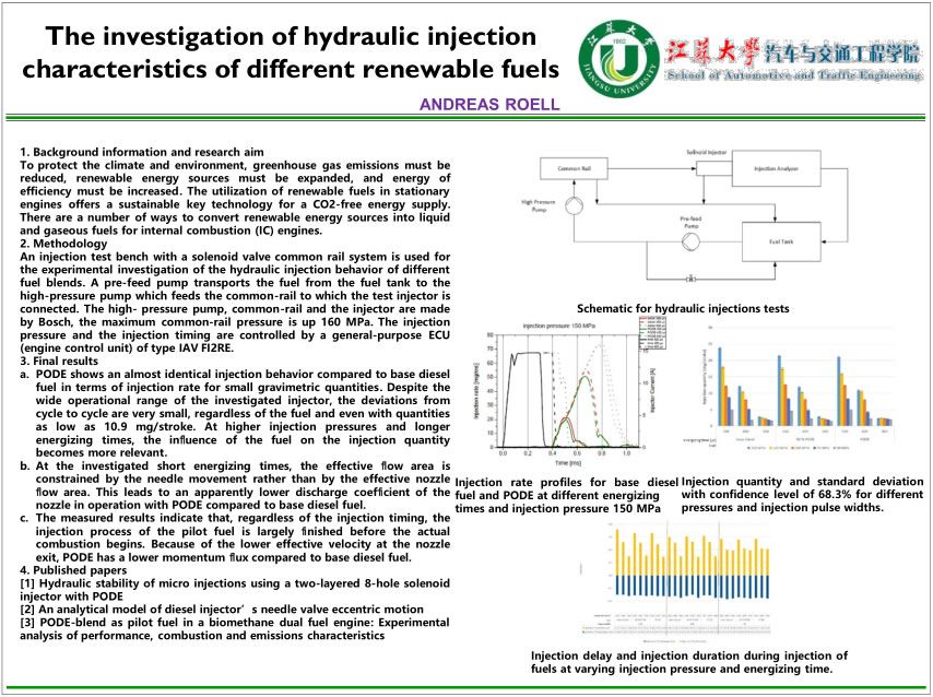 德国籍留学生 ANDREAS ROELL 博士针对不同可再生燃料的水力喷射特性开展研究,发表高质量 SCI 论文 3 篇,其中 SCI 一区论文 2 篇。