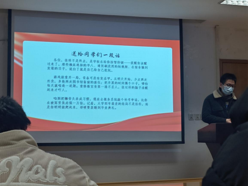 会议最后,柴弘枫寄语同学们,希望同学们不要陷入自我否定的消极状态,应当摒弃敷衍塞责的懈怠态度,以积极进取的精神状态直面挑战,在学业上投入应有的专注与努力,确保如期圆满完成学业目标。
