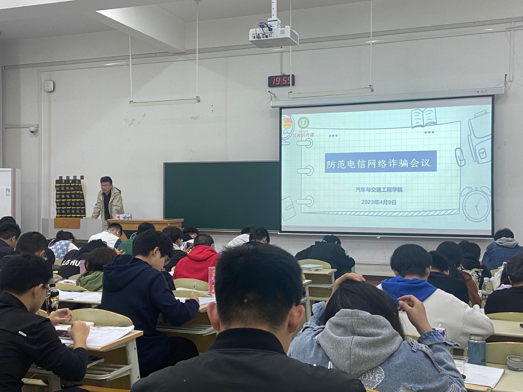 会上,刘老师从维护网络安全、个人信息保护和防范电信网络诈骗等方面,全面宣讲电信网络诈骗的类型、手段和方法,并通过身边的典型案例,向同学们普及电信网络安全的法律知识和反诈骗知识,以提高学生安全意识。