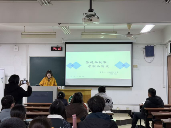 彭宇以“博观而约取,厚积而薄发”为主题,分享了大学三年以来的学业规划,并重点分享了工程实践与创新能力大赛,从找资源、学新课到做项目,彭宇详细阐述了每个环节的要点与技巧。她提醒同学们要善于利用学校提供的各类资源,积极参加各类社团,不断提升自己的专业技能。同时,要注重团队协作,学会在团队中发挥自己的优势,共同攻克难题。让同学们更加直观地感受到了实践的魅力与成果。